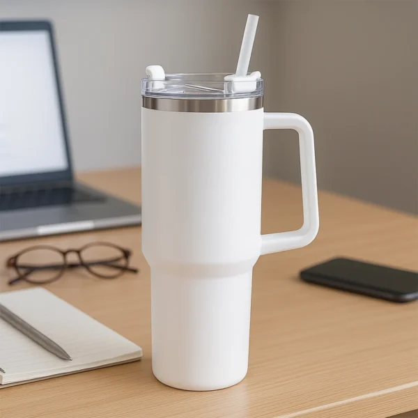 - Design: Handle + Straw + Spill-Resistant Lid